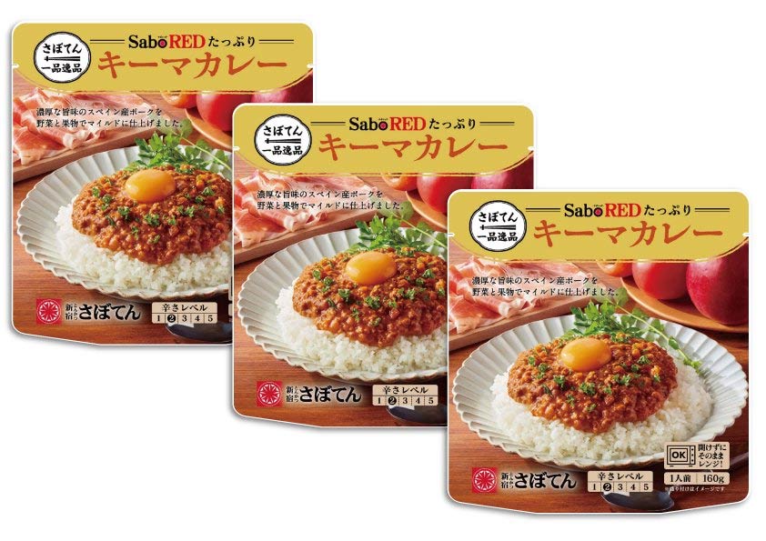 「SaboREDたっぷりキーマカレー」は、濃厚な旨味が特徴の「純粋デュロックポーク」を贅沢に使い、お子さまからお年寄りまでお楽しみいただける、まろやかな味に仕上げました。電子レンジで温めていただくだけで気軽にお楽しみいただけます。