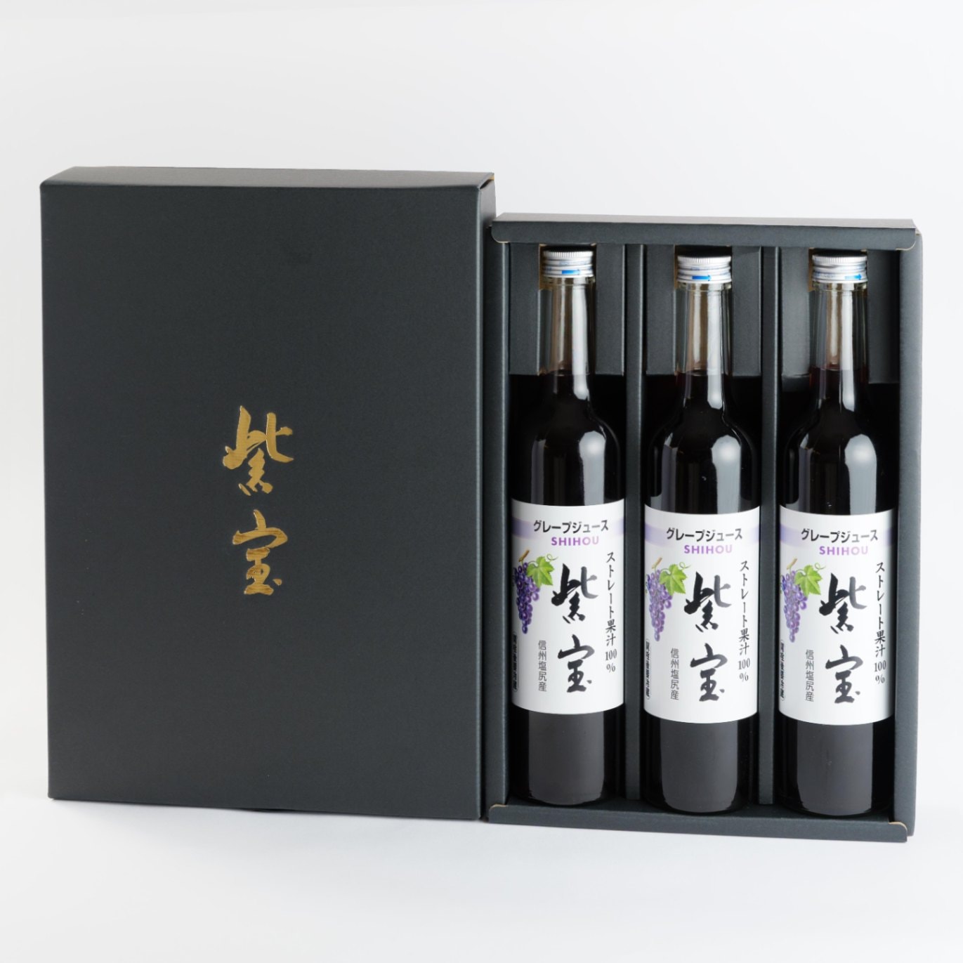 信州塩尻産のぶどうから生まれた果汁100%ジュース「紫宝」です。