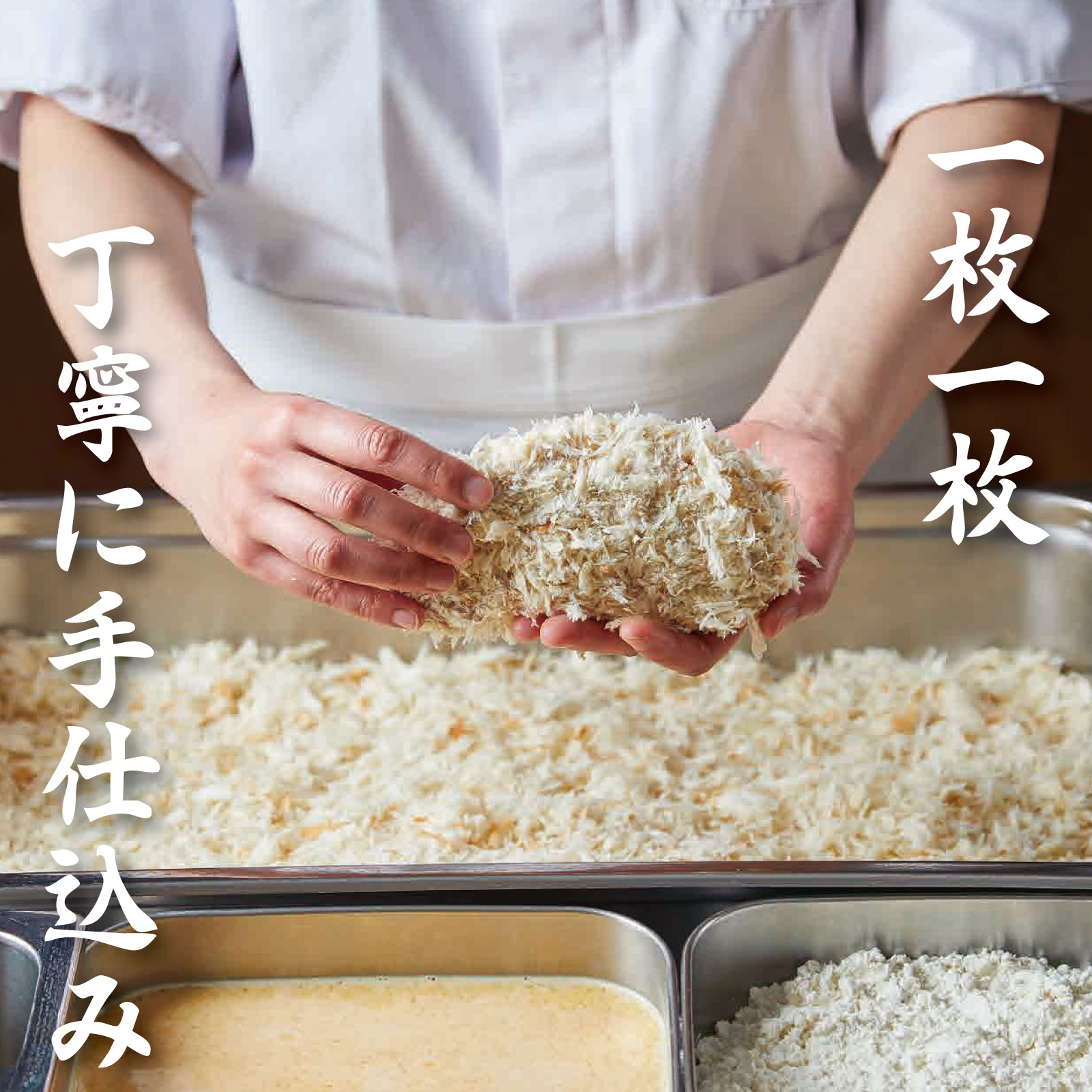 オリジナルのパン粉と油を使用し、さぼてんが一つひとつ丹精込めて作っています。