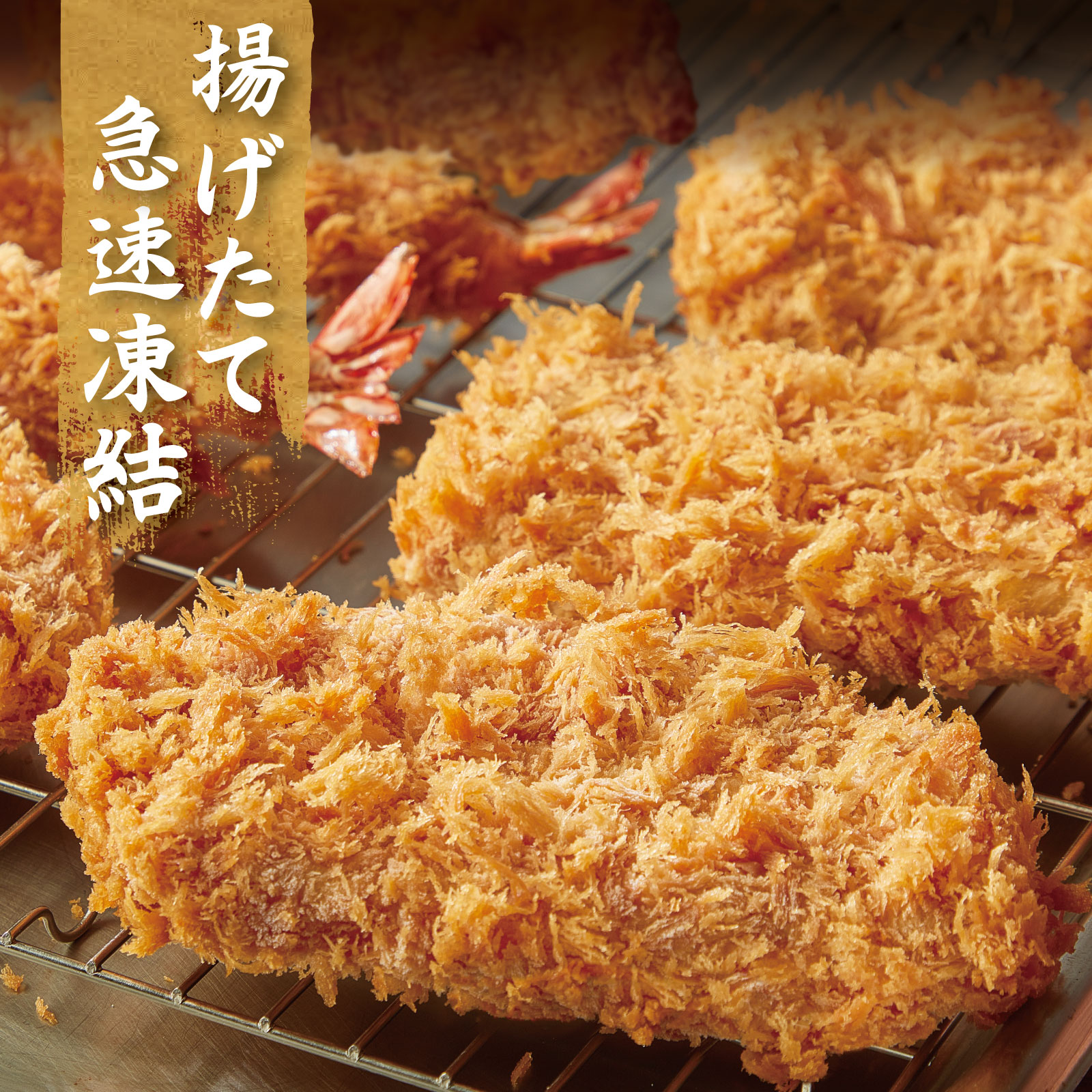 揚げたてをすぐに急速凍結しているので、解凍しても揚げたてサクサクの味わいをお楽しみいただけます。